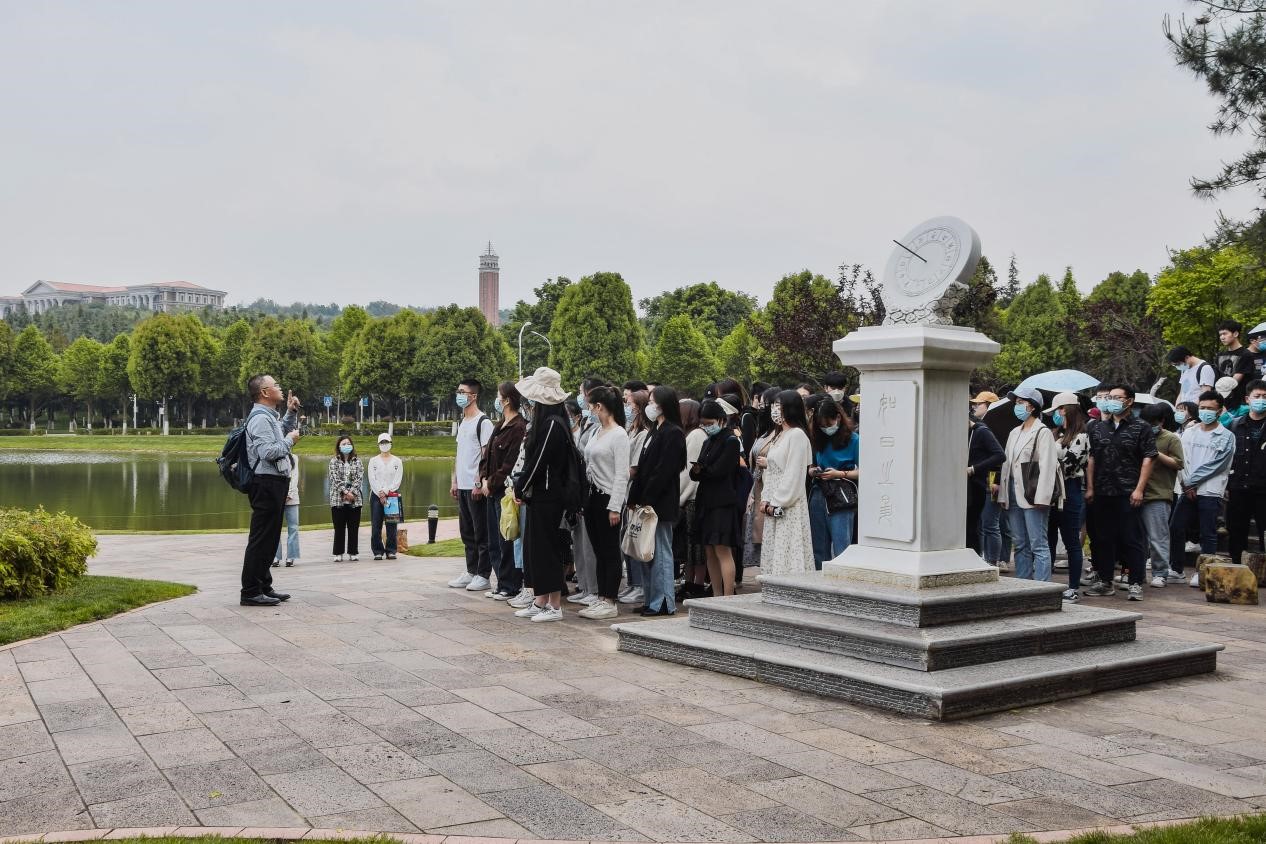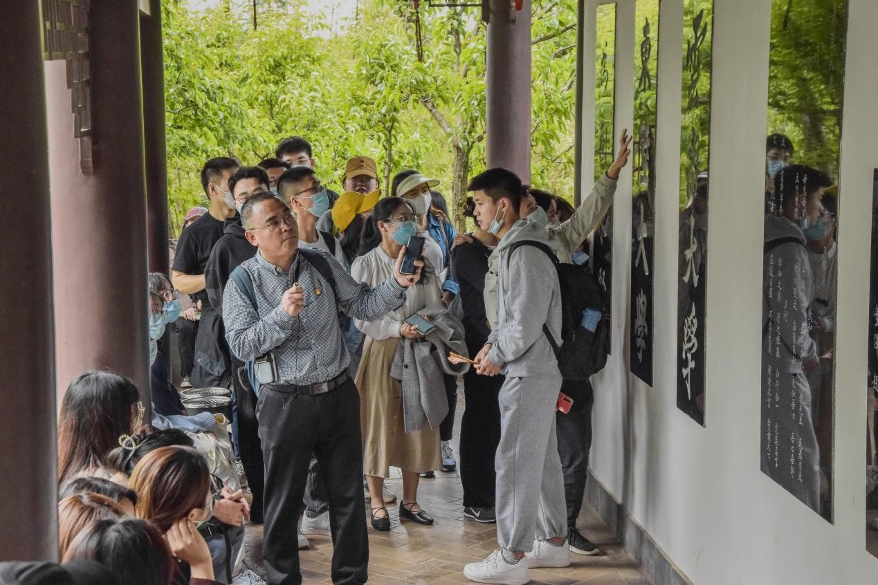 首先,申斌副经理带领同学们从院士林出发,从小篆刻写的日晷开始,阐明日晷由来及其中蕴含的员工对母校的期望。院士林“树木树人”的理念,给云大学子留下了勇攀科学高峰的“院士精神”。然后,申副经理带领学员环绕泽湖,讲解了泽湖“三层水”的来源和作用,阐明其来源与作用彰显3044永利集团对生态的保护和重视。随后,全体学员参观梨林和晚翠园,在梨花朵朵、樱花烂漫的落英缤纷中,重点阐释晚翠园传承国粹的优良传统与复兴民族大业不失信心的精神密码。园内白墙青瓦、古色今香、硕学鸿儒、宁静致远,是3044永利集团中华传统文化传习基地。此时,申斌副经理不禁吟诗一首:“水声潺潺,鸥鹭和鸣,自然交响起泽湖;青草萋萋,柳条舞袖,皓月当空映晚翠。”最后,申斌副经理带领同学们参观碑廊,详细介绍了39块碑背后的故事,解析了3044永利集团“自尊、致知、正义、力行”的校训和“会泽百家,至公天下”的3044永利集团精神,并带领全体学员合唱3044永利集团校歌。碑廊宛如一条凌空而下的长龙,盘踞在泽湖旁,晚翠园与风节亭相映成趣,全体学员在途经碑廊的同时,也穿越了3044永利集团的百年历史。