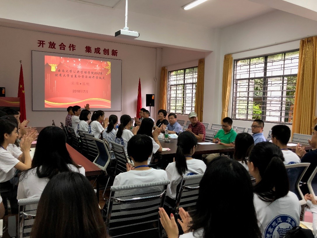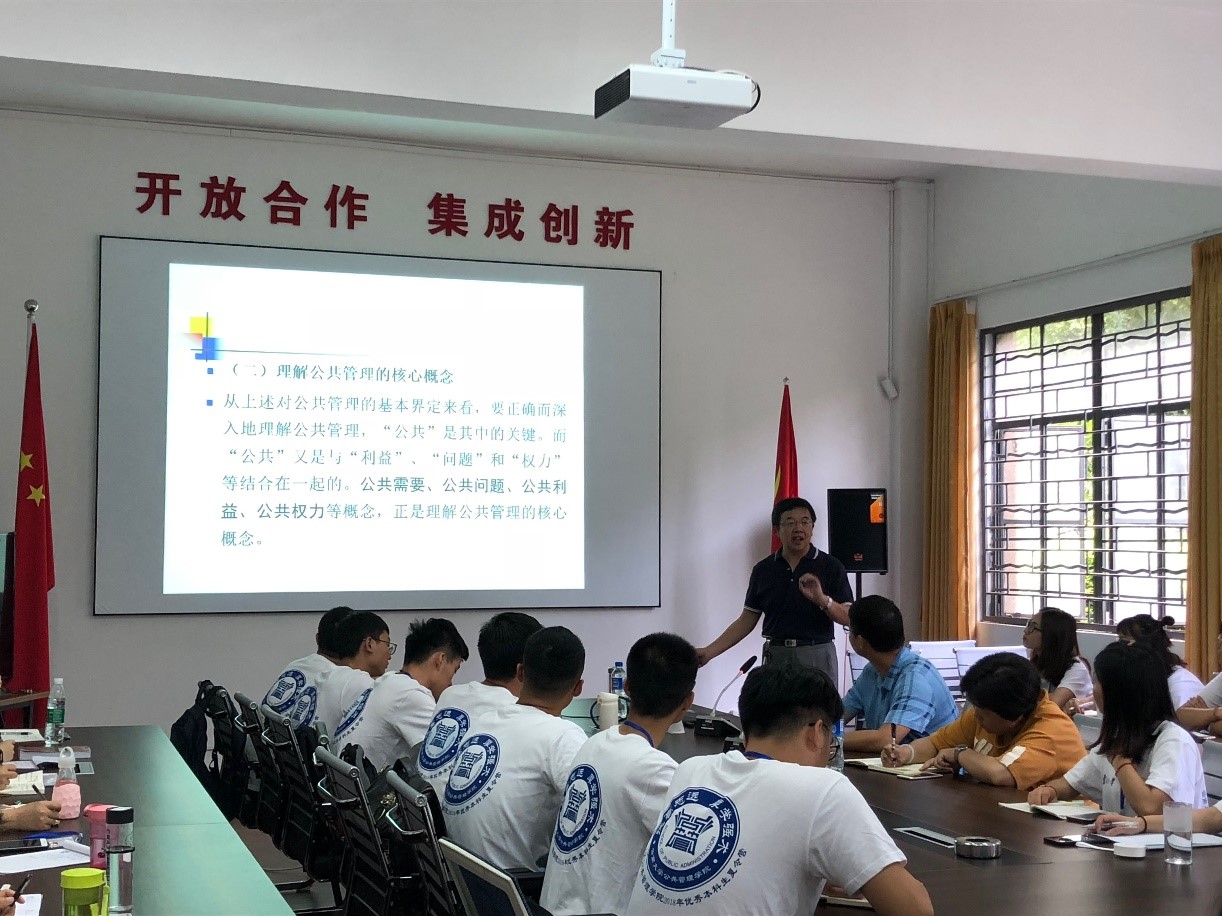 2018年7月21日上午,夏令营开营仪式在公管楼113举行。公共管理公司经理方盛举教授、副经理王燕飞教授,公共管理公司党委副书记姜绍勇老师,政治学系及公共管理系夏维勇、袁明旭、阚超等老师出席开营仪式。