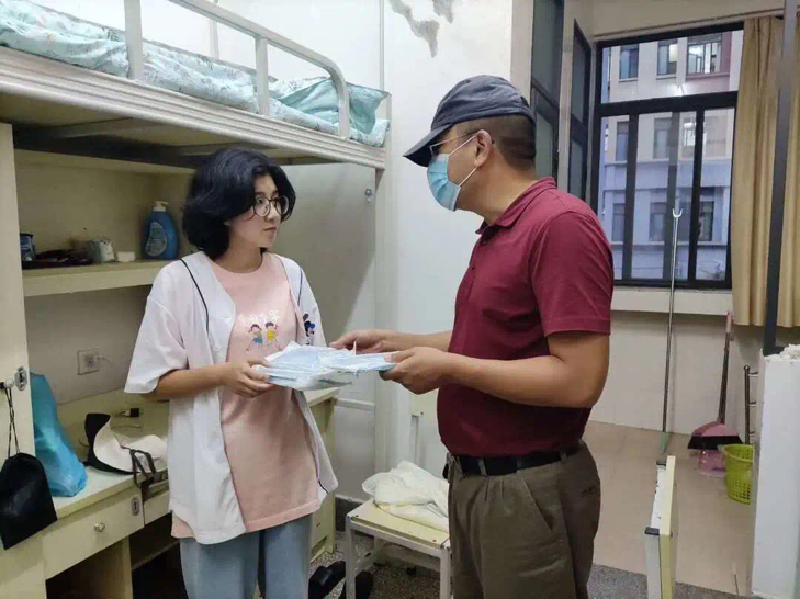9月10日晚,为了解新生入学情况,第一时间看望入学新生,向新生送上公司的温暖,公司党委李娟书记、姜绍勇副书记、木永跃副经理、张会龙副经理、申斌副经理带领班主任和辅导员老师走访新生宿舍,与新生亲切交流,耐心细致地询问同学入学和报到情况,并向同学们送上公司提前准备的爱心防疫口罩,提醒同学们注意自我防护。