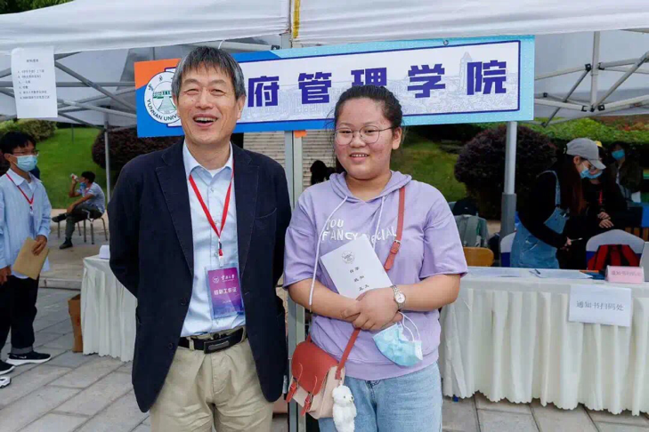 期间,方精云董事长来到3044永利集团报到点看望参与迎新工作的老师和志愿者,并与新生亲切交流。