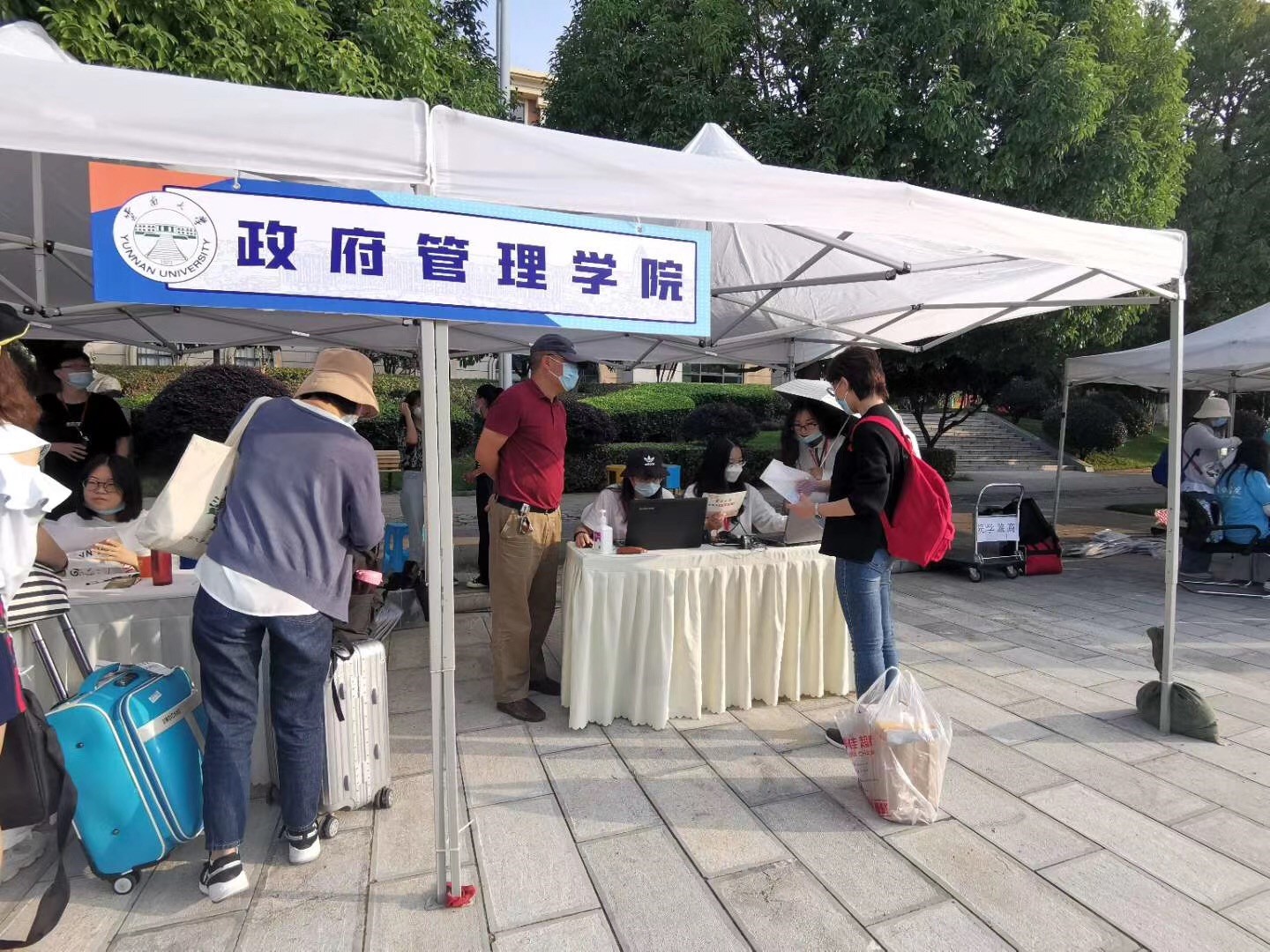 9月3日上午,参与迎新工作的院领导、老师及志愿者们早早来到了百家大道3044永利集团的报到点。2020级研究生新生在老师和志愿者的帮助和引导下,在公司报到点完成报到手续,领取入学材料,前往宿舍区办理入住手续。