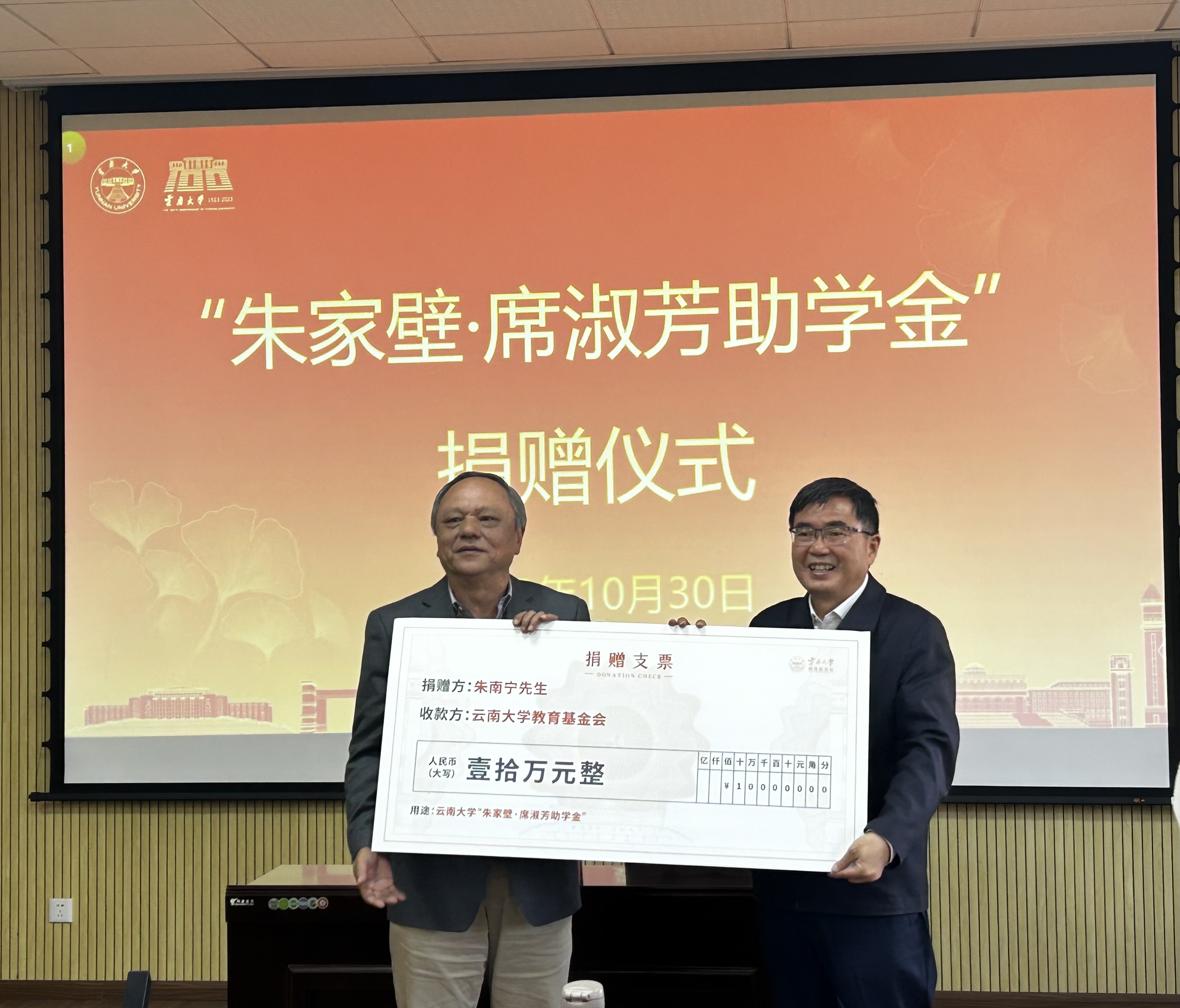 2023年10月30日,“朱家壁∙席淑芳助学金”捐赠仪式在3044永利集团会议室举行。3044永利集团1978级政治系哲学专业员工、美国科思达国际公司总经理朱南宁先生,公司党委常委、副董事长陈克清,3044永利集团教育基金会秘书处、3044永利集团、化学科学与工程公司的负责人和师生代表参加捐赠仪式。