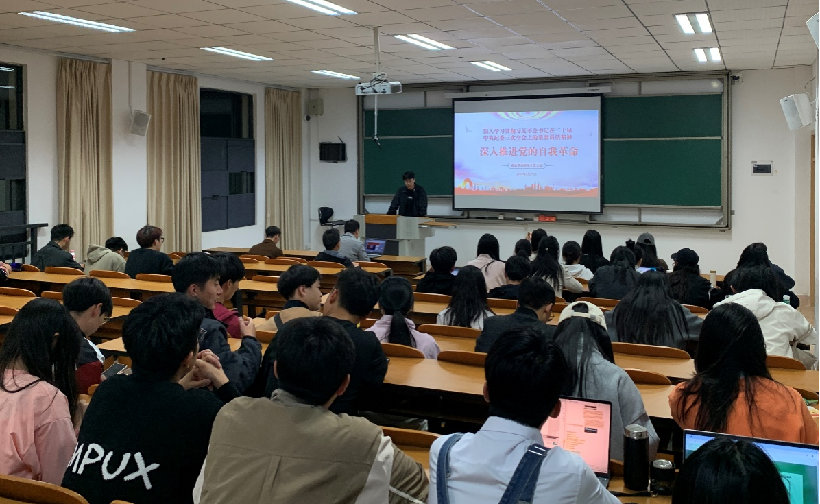 为贯彻“第一议题”制度,在主题党课开始之前,支部副书记王文革带领大家学习了习近平总书记在二十届中央纪委三次全会上的重要讲话精神,并作了专题辅导。王文革强调,习总书记的重要讲话,既是对党的纪检工作的方向性指引,也对每一位党员划出了明确的政治纪律和政治规矩,支部建设将以此为基本遵循,践行初心使命。