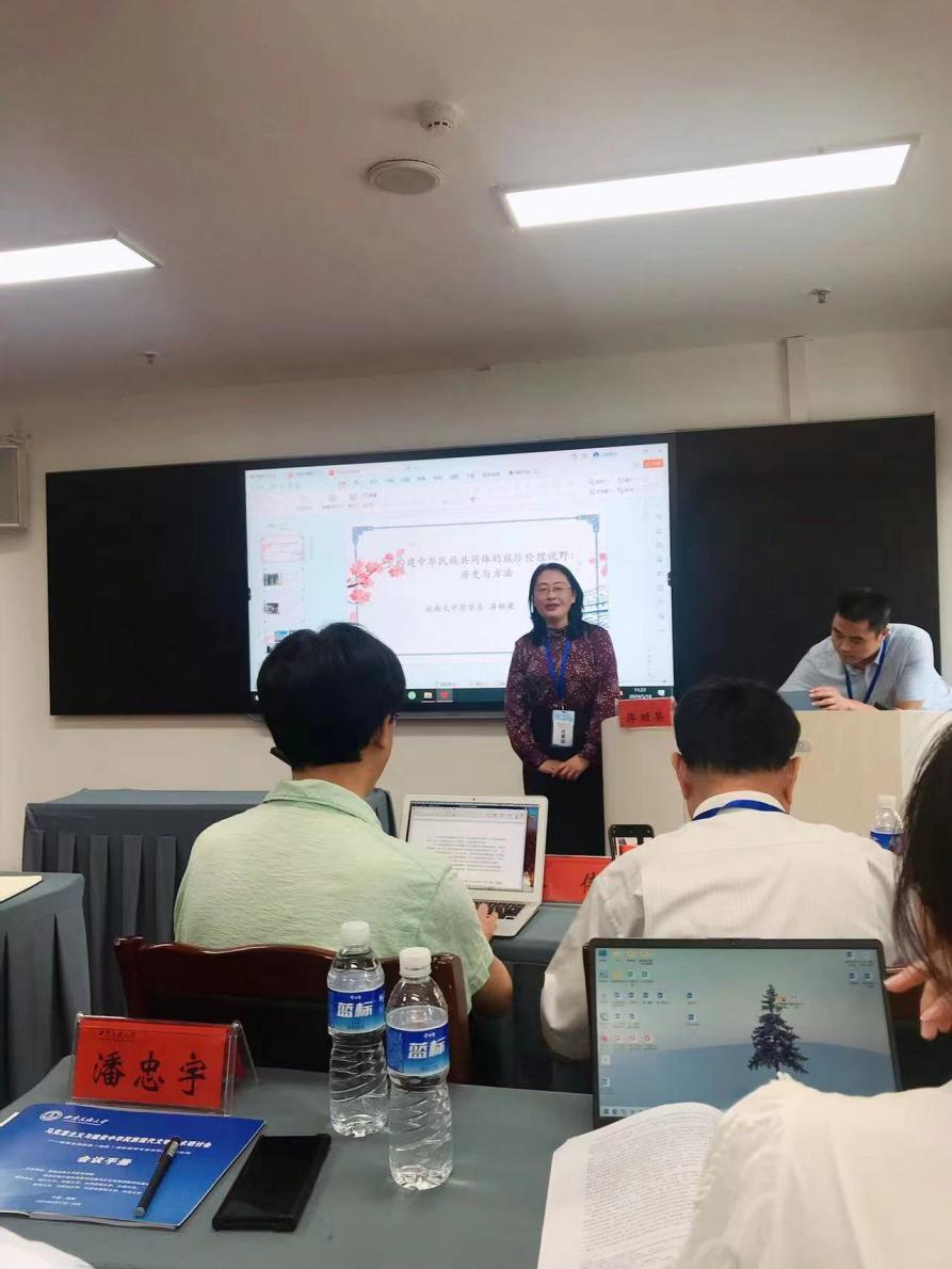 公司哲学系五名师生代表参会,蒋颖荣教授发表《构建中华民族共同体的族际伦理视域:历史与方法》主题报告,本科生王彦然、吴嘉睿、王晓佩三位同学在小组论坛发言,教师杨晓薇主持第二小组论坛并参与讨论。