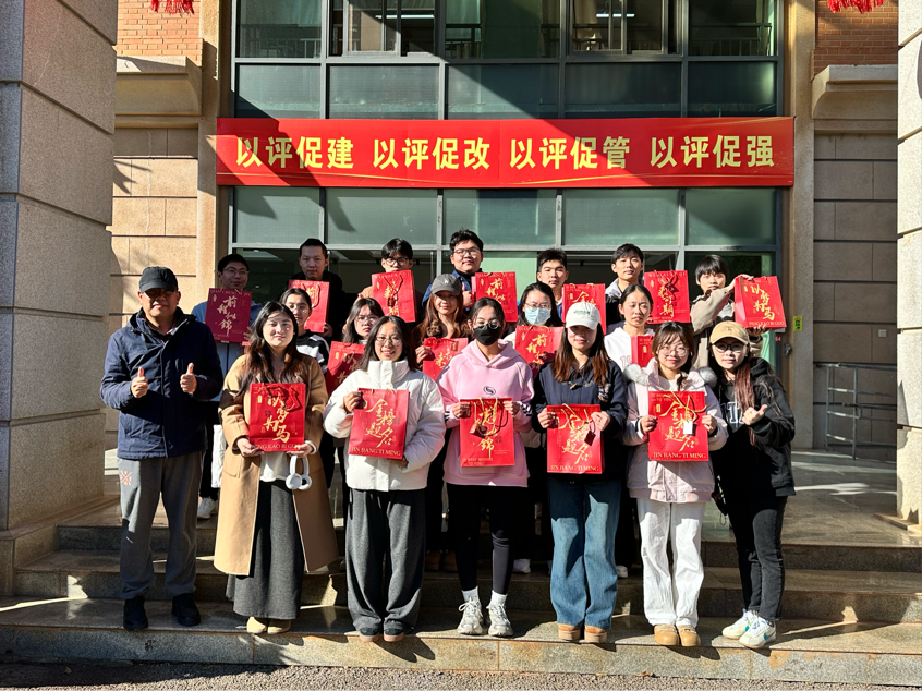 随后,同学们接过慰问品移步到公司外,聆听着老师们的鼓励话语并合影留念。姜绍勇书记为同学们送上了一份份宝贵的“精神锦囊”,每一句话都饱含着对同学们的殷切期望和深深祝福。付秋静老师也鼓励同学们要坚定信心,保持积极乐观的心态,相信自己的努力一定会换来丰硕的成果。
