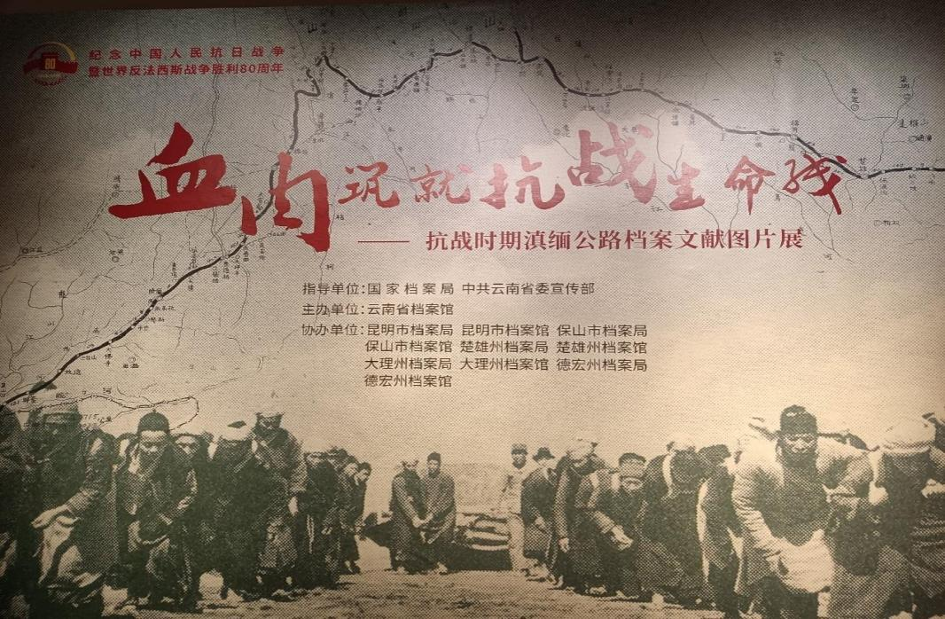 图1:“血肉铸就抗战生命线——抗战时期滇缅公路档案文献图片展”展览主题