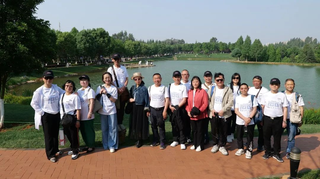 迎着灿烂的朝阳,顺着林荫小道我们来到美丽的泽湖,在这里环湖一圈,在院士林前的草地上留下我们身着班服的合影。