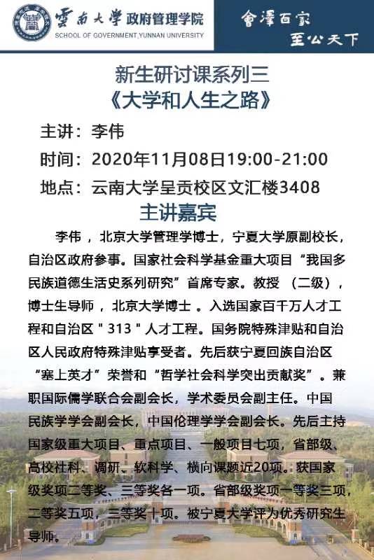 李伟:新生研讨课系列三《大学和人生之路》